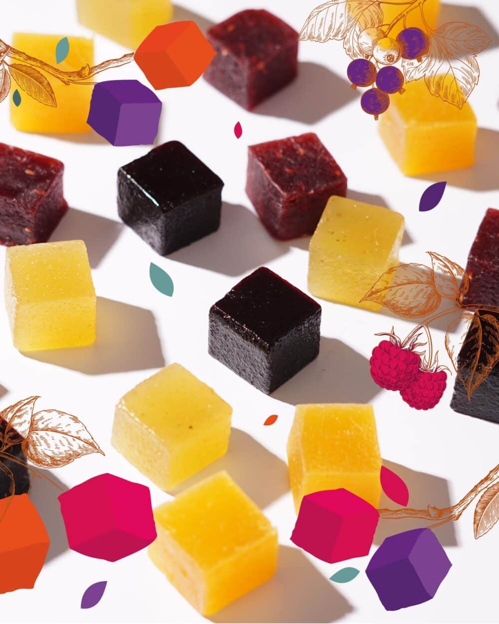 Notre produit signature, le Pavé Grande Tradition, cette pâte de fruits artisanale fabriquée avec le plus grand soin, a été repensée afin de laisser une place prépondérante au goût du fruit dans le produit fini. Les grains de sucre traditionnels ont été remplacés par une cire, d’origine végétale et au goût neutre, pour enrober le produit et proposer une version plus moderne de la pâte de fruits. Une recette pur fruit, garantie sans colorant ni conservateur.